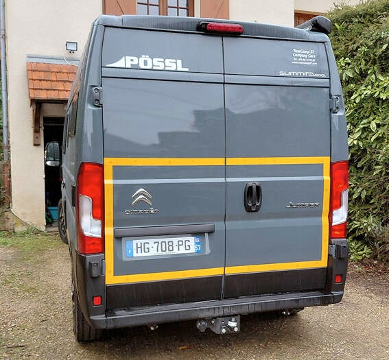 10 maart 2026: ik heb de Pössl uit de hal gehaald en de reflecterende 3M strips aangebracht op achterkant en zijkanten voor meer veiligheid. Donderdag ga ik naar de dealer, Camp'57, voor de nieuwe wc deur etc.