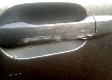 Ik heb het opstaande randje om de deuk een beetje teruggeslagen met een uitdeukhamer, maar de krassen zijn diep en de deuk moet gevuld. Het kunststof is gegroefd, daar is weinig aan te doen. Ach, we zien nog wel eens!